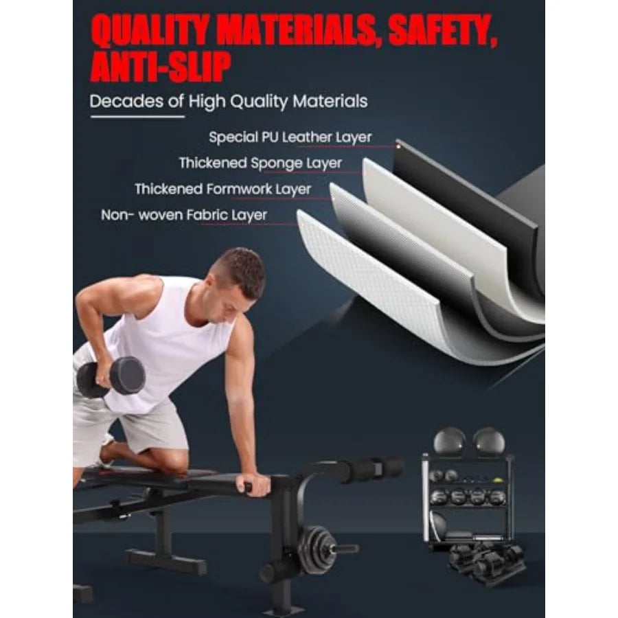 XMSJ 600LBS Adjustable Weight Bench Integrated Squat Rack Leg Extension