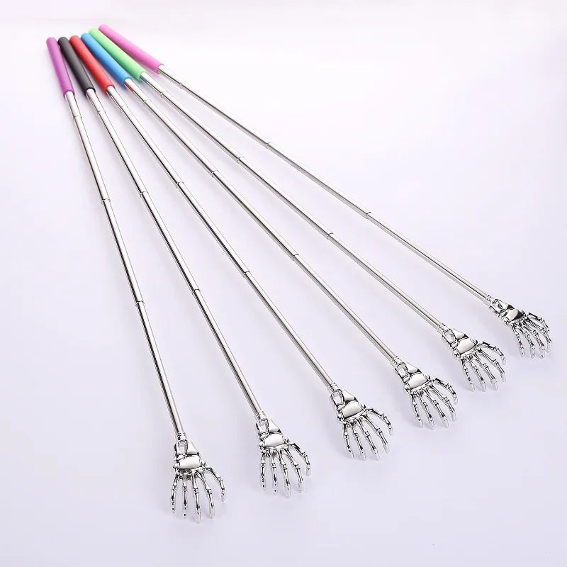 Reach every itch with a telescopic back scratcher in stainless steel that extends from 22 cm to 59 cm for precise, comfortable relief.